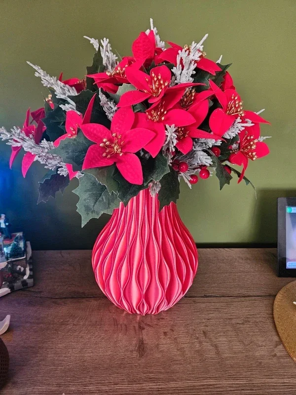Deze unieke 3D-geprinte designvaas is een echte eyecatcher in elk interieur. Dankzij het elegante, golvende patroon en de luxe uitstraling past deze vaas perfect in zowel een modern als warm ingericht huis.